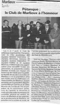 A partir de 1990 le village de MARLIEUX est connu et reconnu dans le monde de la Pétanque. Le Club a sa place parmi les grands.