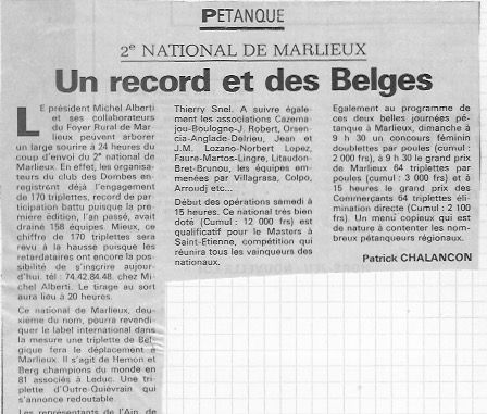 L'élite de la pétanque se déplace à Marlieux : FOYOT , DUCAROUGE , MAZZEO , FONTAINE , RADNIC , CHAPELAND , des belges , des tunisiens , des italiens ...