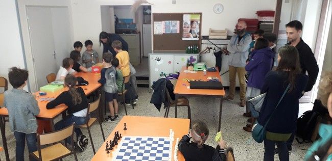 Le tournois d'échecs a réuni une quinzaine de participants. Parents et enfants sont passés entre les différents stands de jeux (énigmes, warhammer, jeu de morpion amélioré de chez Domino ...)