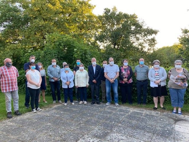 Le Conseil Municipal issu des récentes élections municipales s'est réuni le lundi 25 mai dans la salle des Fêtes du village , pour permettre le respect des mesures sanitaires.