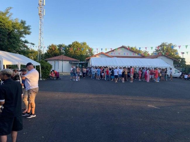Devant la salle des Fêtes rénovée , l'équipe a préparé chapiteaux , buvette , repas , animation musicale pour attirer environ 500 personnes contentes de se retrouver , de discuter , de partager un bon moment.