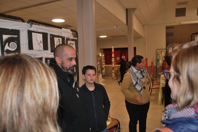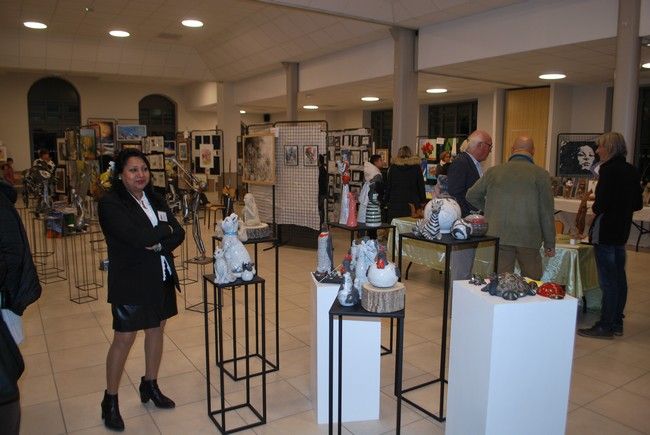 Shohela , entourée du président Eric Nectoux , d'une bonne équipe de bénévoles , a réuni une vingtaine d'exposants régionaux qui présentent dessins , tableaux , sculptures , poteries etc...