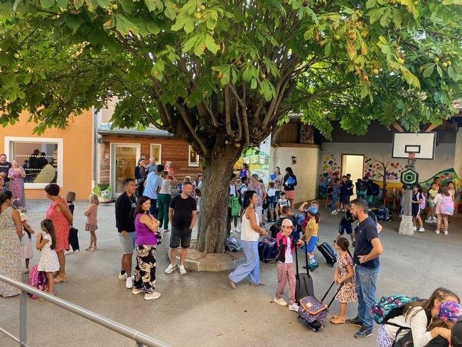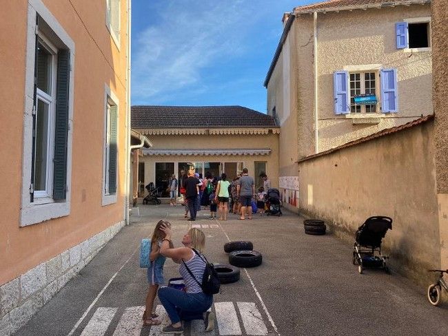 Le lundi 4 septembre , ambiance habituelle aux abords de l'école : enfants aux yeux parfois larmoyants , parents très attentionnés , personnel enseignant aux "petits soins"...