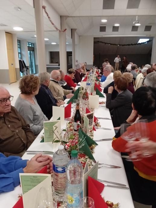 Samedi 2 décembre 2023 , la salle des Fêtes accueille 77 convives pour le traditionnel repas offert par le CCAS.(Centre Communal d'Action Sociale)