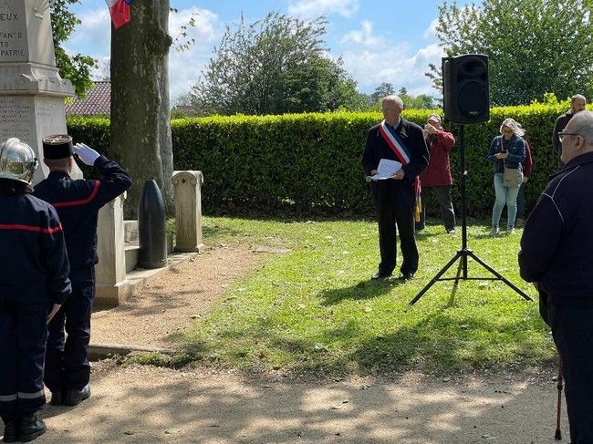 La traditionnelle commémoration au Monument aux Morts de Marlieux a été précédée d'un dépôt de gerbe devant la stèle du Curtelet , édifiée à la mémoire de résistants fusillés dans le voisinage en juillet 1944.