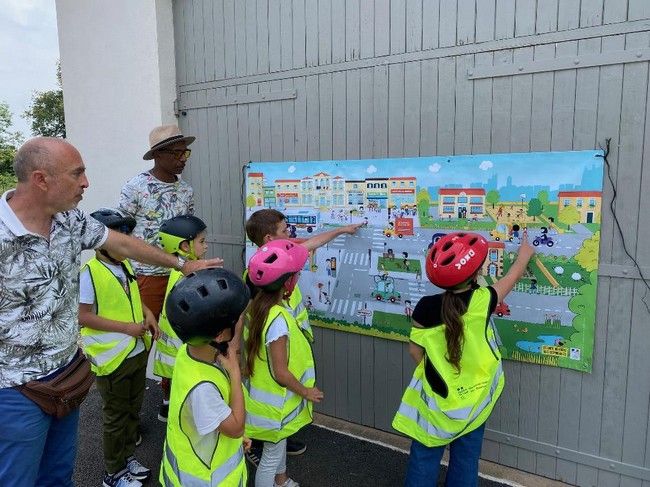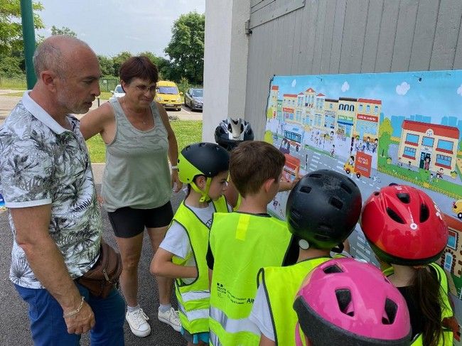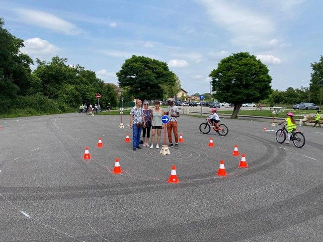 Avec la collaboration de monsieur Faugère , chef de l'unité sécurité routière à la Préfecture , un circuit de circulation a été établi sur le parking de la salle des Fêtes le 7 juillet , et les enfants ont pu se retrouver dans les conditions de la conduite sur route et apprendre les subtilités de la signalisation.
