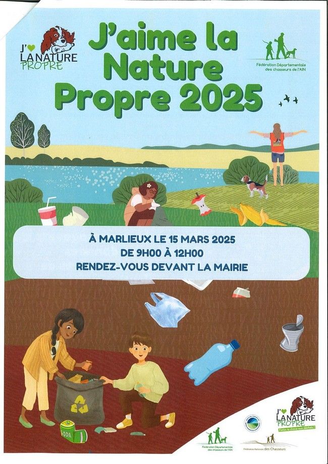L'opération de nettoyage du village dite "J'aime la Nature Propre" , portée par certaines associations ( Fédération Nationale et départementale des Chasseurs , la FF Randonnée ...etc ) , cofinancée par l'Office Français de la Biodiversité , a été organisée par la direction de l'école Saint-Jean Bosco avec le soutien de la Commune de Marlieux.