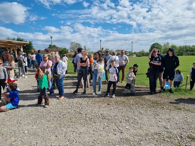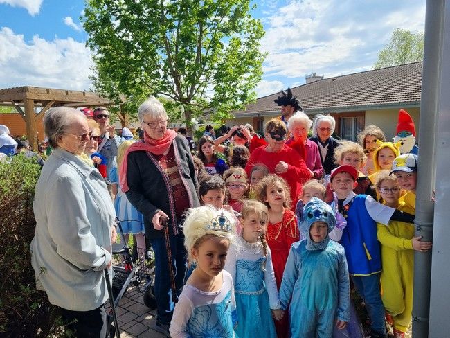 Les enfants ont pu circuler agréablement , avec un passage sympathique à la MARPA le Renon où ils ont rencontré les résidents, dont certains les ont accompagnés jusqu'au stade .