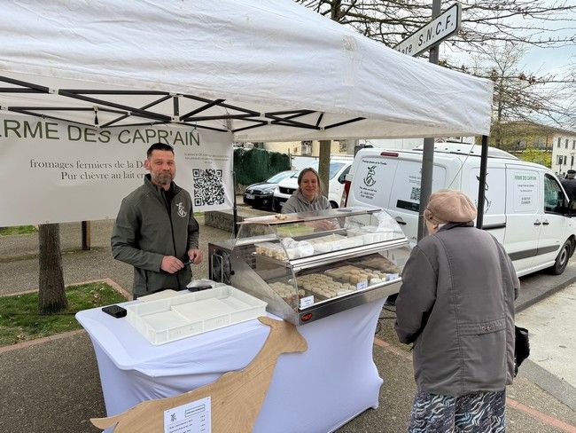 Celui de Julien Falconnet et Laura Thibaud de la ferme des Capr'Ain aux Chaffangères qui propose leurs fromages de chèvres ( voir article dédié)