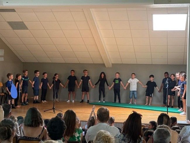 Sous la direction des professeurs , et avec le soutien de l'intervenant musique engagé par la municipalité , chaque classe a préparé un "show" sympathique , qui permet à chaque enfant de connaitre l'émotion et le stress de la montée sur scène !