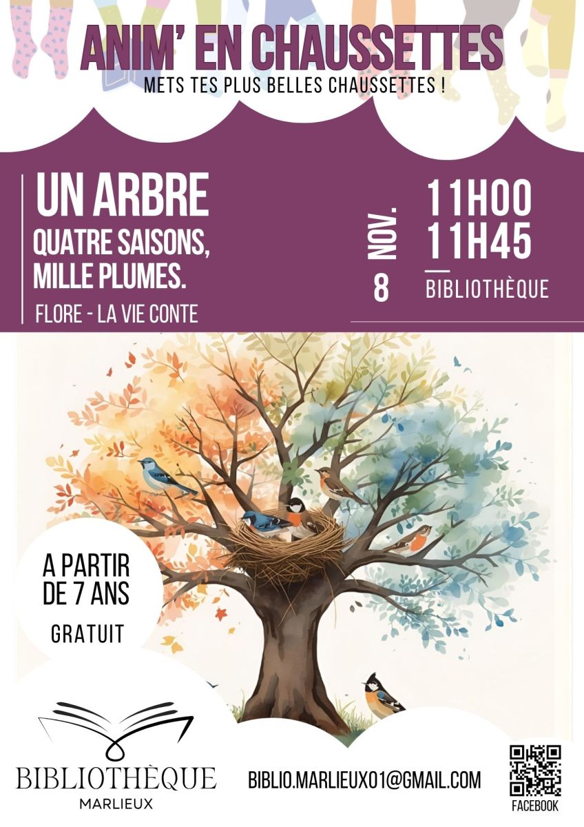 Les bénévoles de la bibliothèque municipale de Marlieux vous proposent une animation gratuite, chaque 2ème samedi du mois. Découvrez ci-dessous, l'affiche de l'animation du samedi 8 novembre 2025.