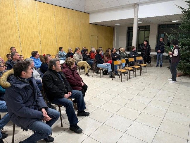 Un débat suivait la présentation , avec la collaboration de Fabien Falconnet et Laura Thibaud de la ferme Les Capr'Ain des Chaffengères , dont l'expérience avec leur chèvrerie est intéressante.