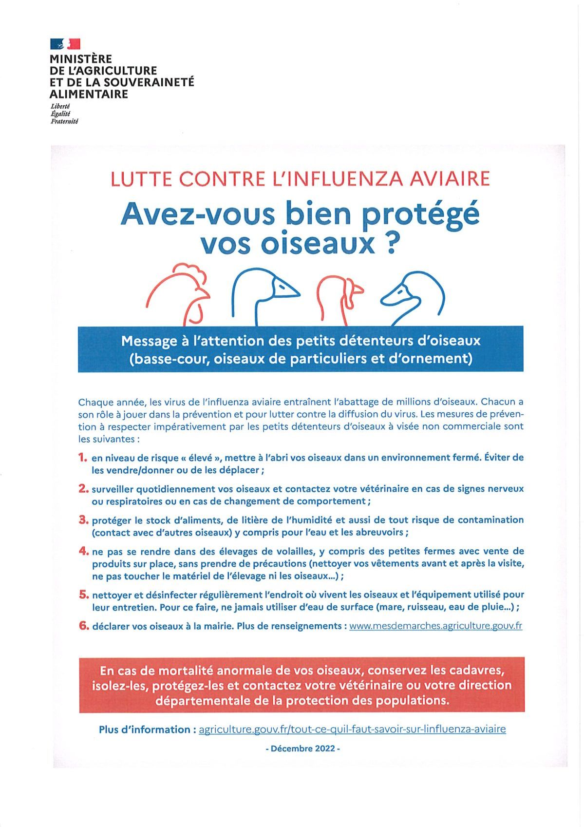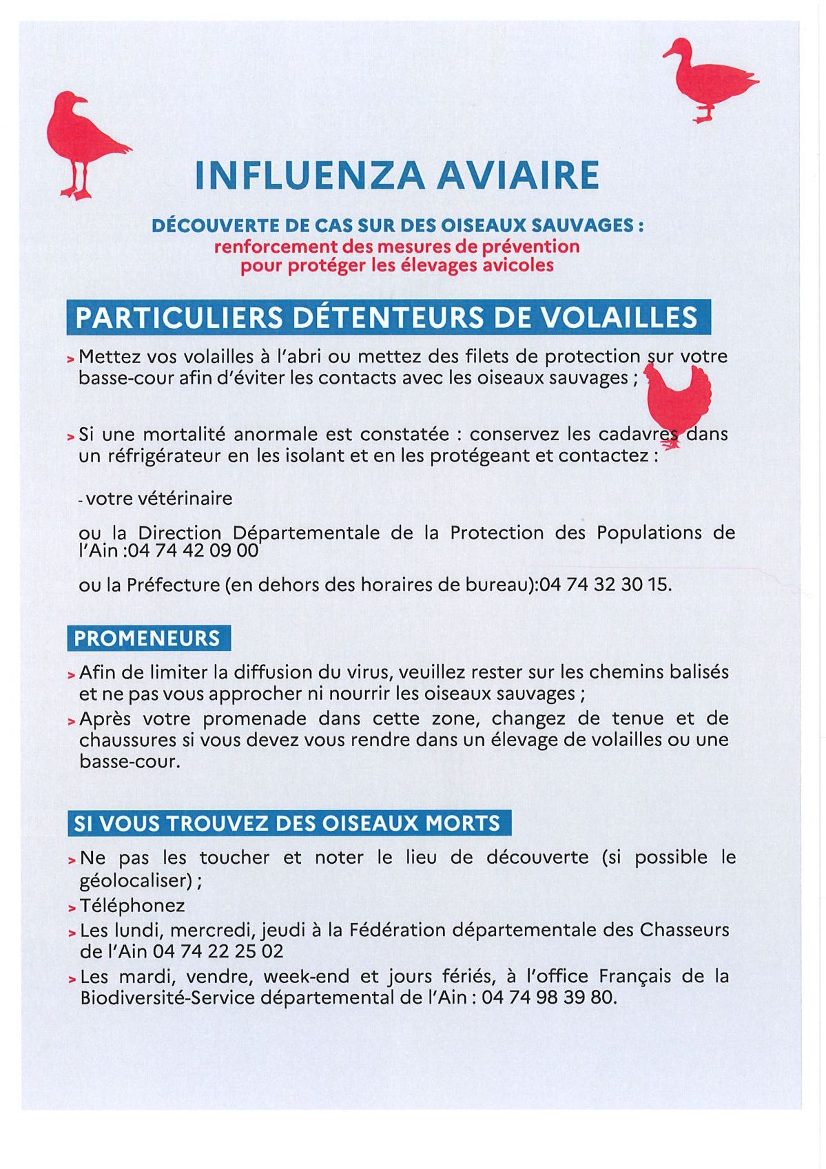 Afin de prévenir le risque de diffusion de la maladie dans les élevages de volailles et de gibier à plumes du département, nous vous invitons à prendre connaissance des consignes ci-dessous.