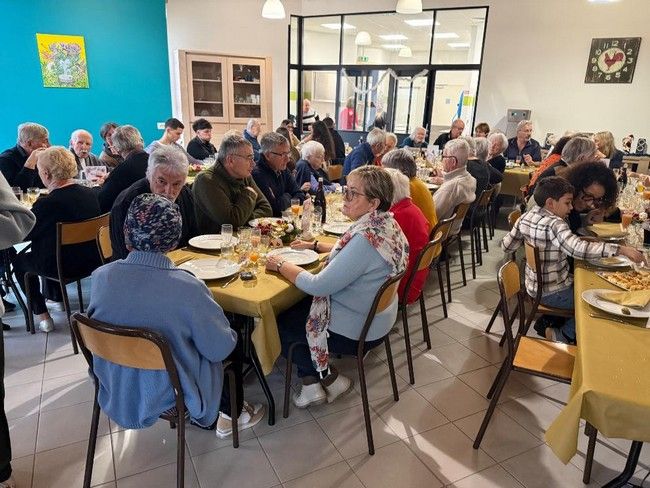 Lundi 22 décembre 2025 , la salle à manger de la Marpa n'est pas assez grande pour contenir les parents des résidents venus partager un bon repas.