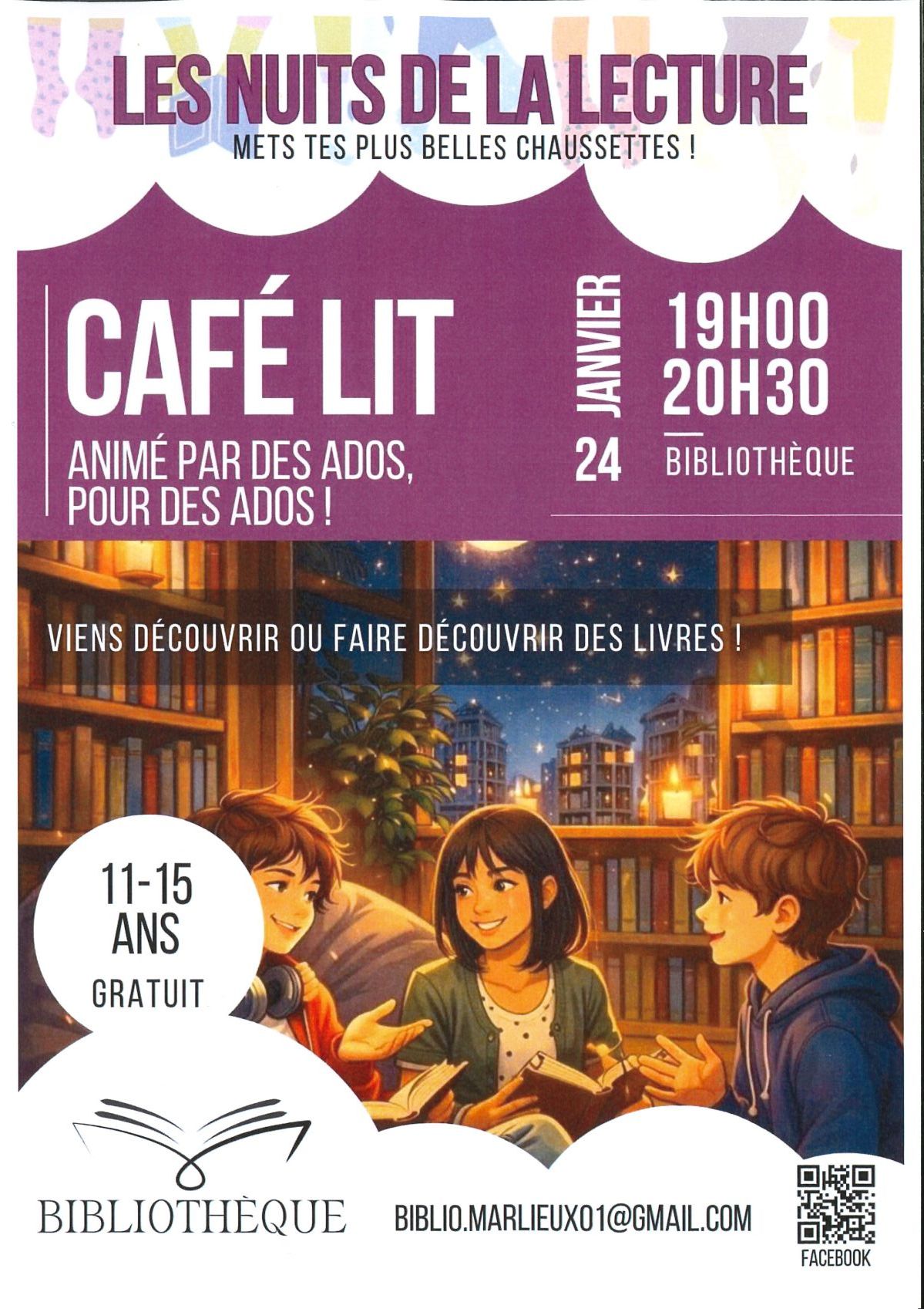 Ce samedi 24 janvier 2026, les bénévoles de la bibliothèque municipale organisent une animation à destination des ados (11-15 ans) dans le cadre des "Nuits de la lecture".