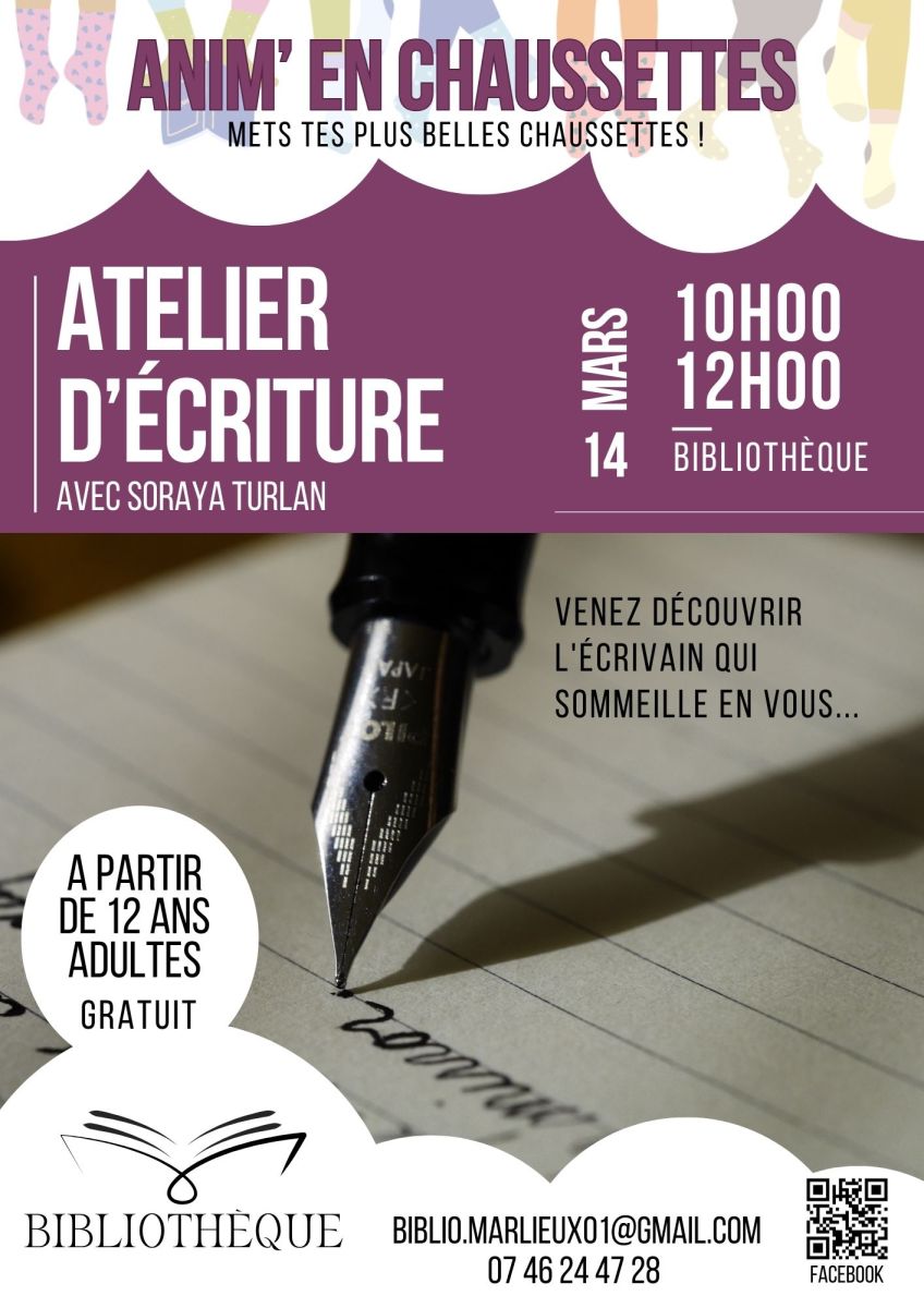 Les bénévoles de la bibliothèque organisent un atelier d'écriture le samedi 14 mars 2026 (10h00-12h00)