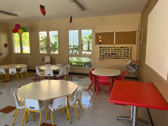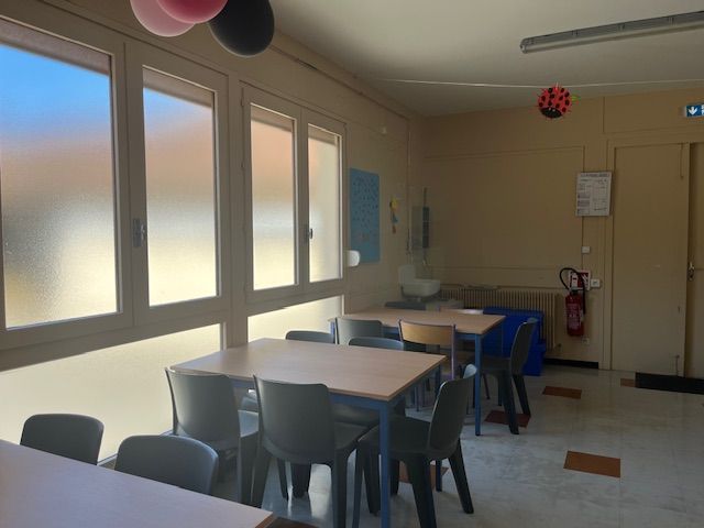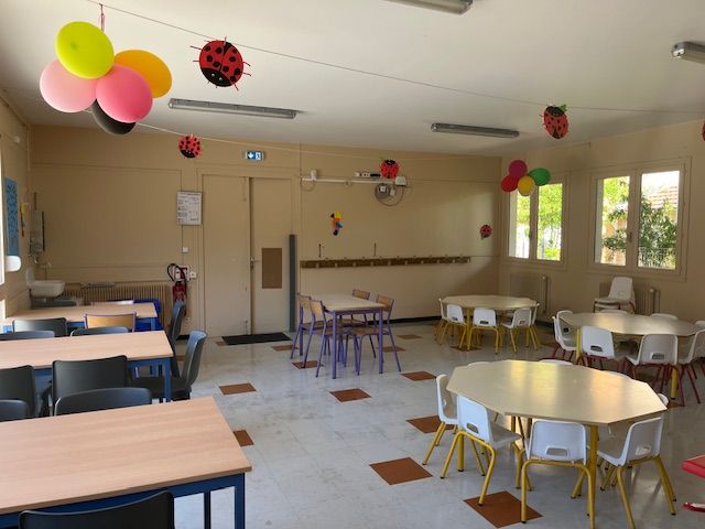 Suite au déménagement de la classe des CP dans l'algeco, la nouvelle salle de la cantine a été mise en place pendant les vacances de printemps.