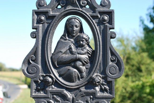 Elle est en fonte, posée sur une assise de béton, orientée à l'ouest et porte aussi l'inscription "Souvenir de Mission 1861".