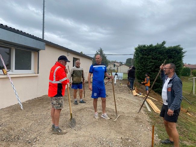 Ils ont commencé par la partie située près de la salle des Fêtes avec reprofilage d'un fossé pour drainer les eaux de pluie vers l'étang et décaissement des fondations de l'ancien silo à grains de Ceregrain.