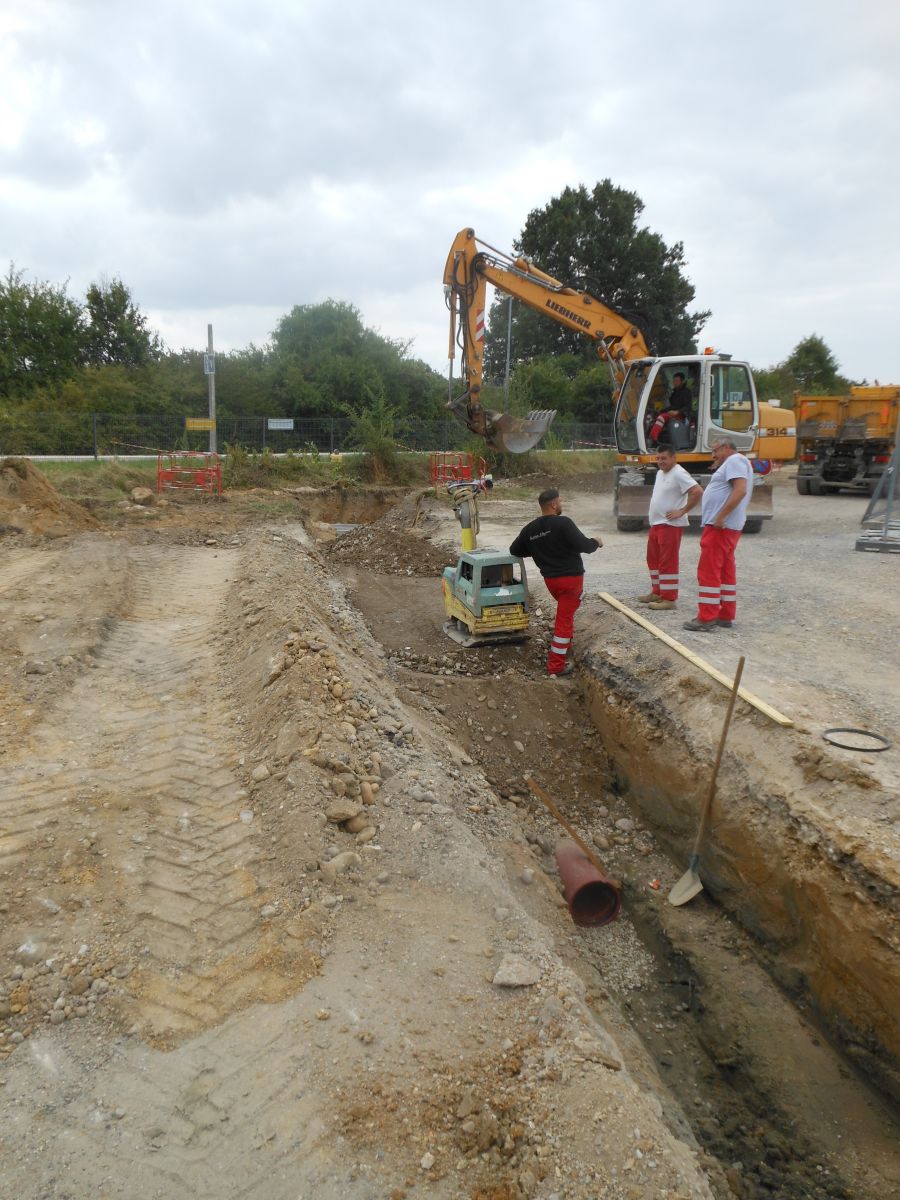 Fin juillet les deux noues qui vont récupérer les eaux pluviales sont terminées.