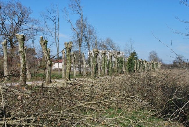 Hiver 2017 18 : Élagage "sévère" de la haie du tennis qui occasionnait des problèmes de nettoyage et d'humidité. Élagage des platanes au voisinage de la Mairie.