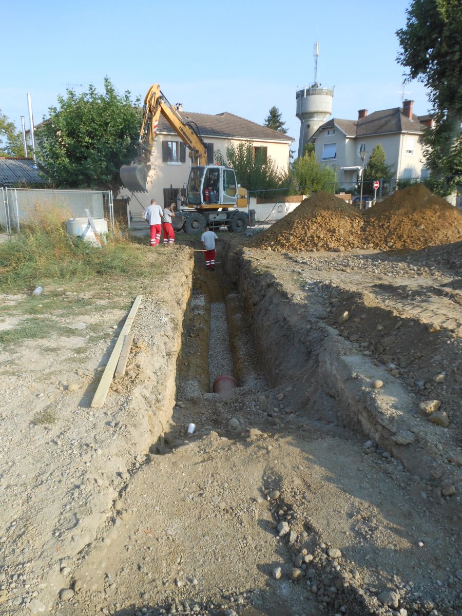 Les études menées pour la reconstruction de la station d'épuration ont montré que l'on a intérêt à séparer le cheminement des eaux pluviales et usées . C'est ce que l'on appelle la mise en séparatif. Il a donc été décidé d'adopter un plan d'intervention sur plusieurs années pour procéder cette mise ne séparatif des réseaux (schéma directeur d'assainissement) , en commençant par la rue de la laiterie qui récupère toutes les eaux pluviales canalisées par la voie ferrée en regard du lotissement de Clos des Dombes.