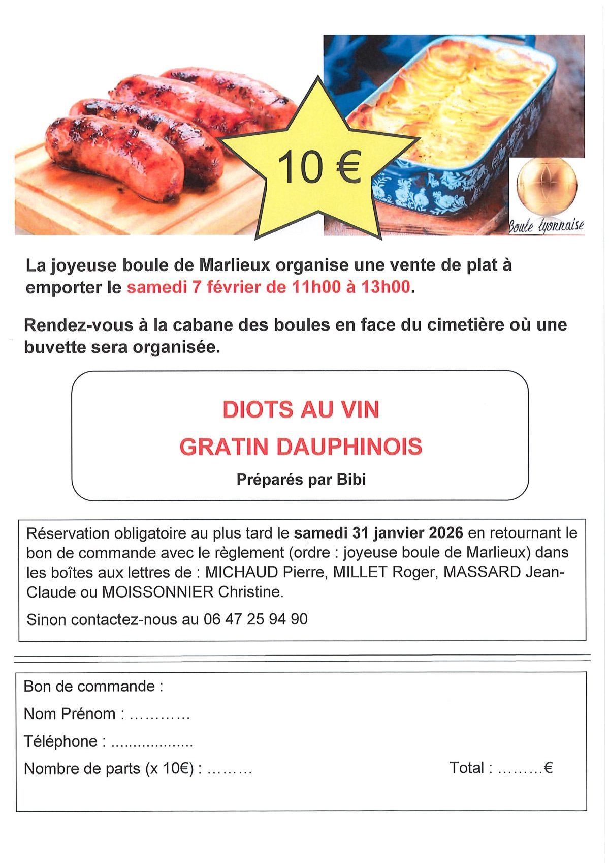 L'association "La Joyeuse Boule" a organisé sa traditionnelle vente de plats à emporter le samedi 7 février à la cabane du boulodrome.